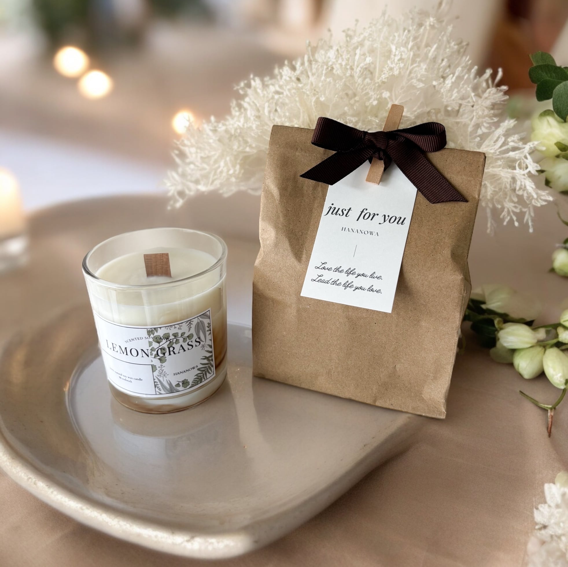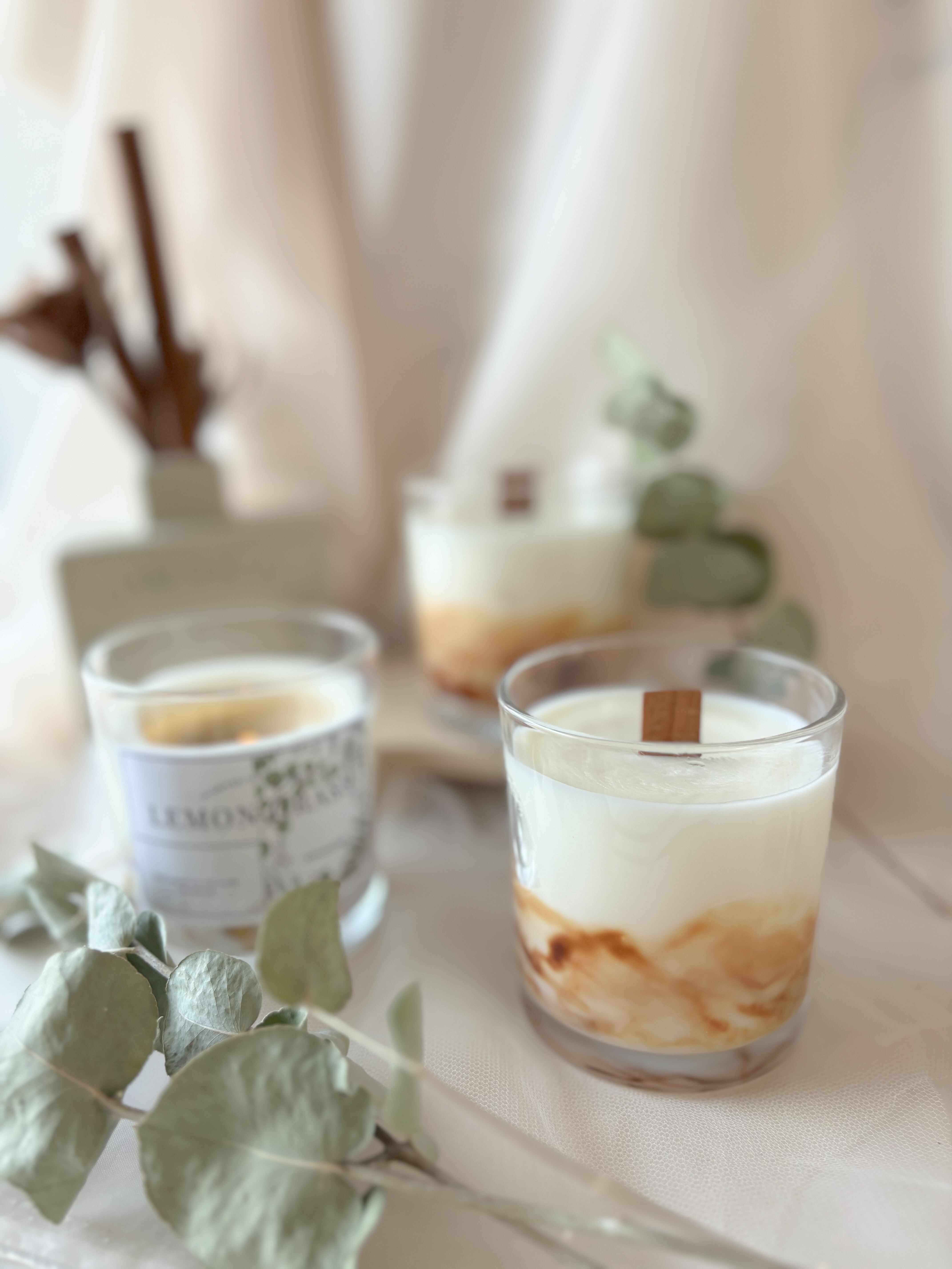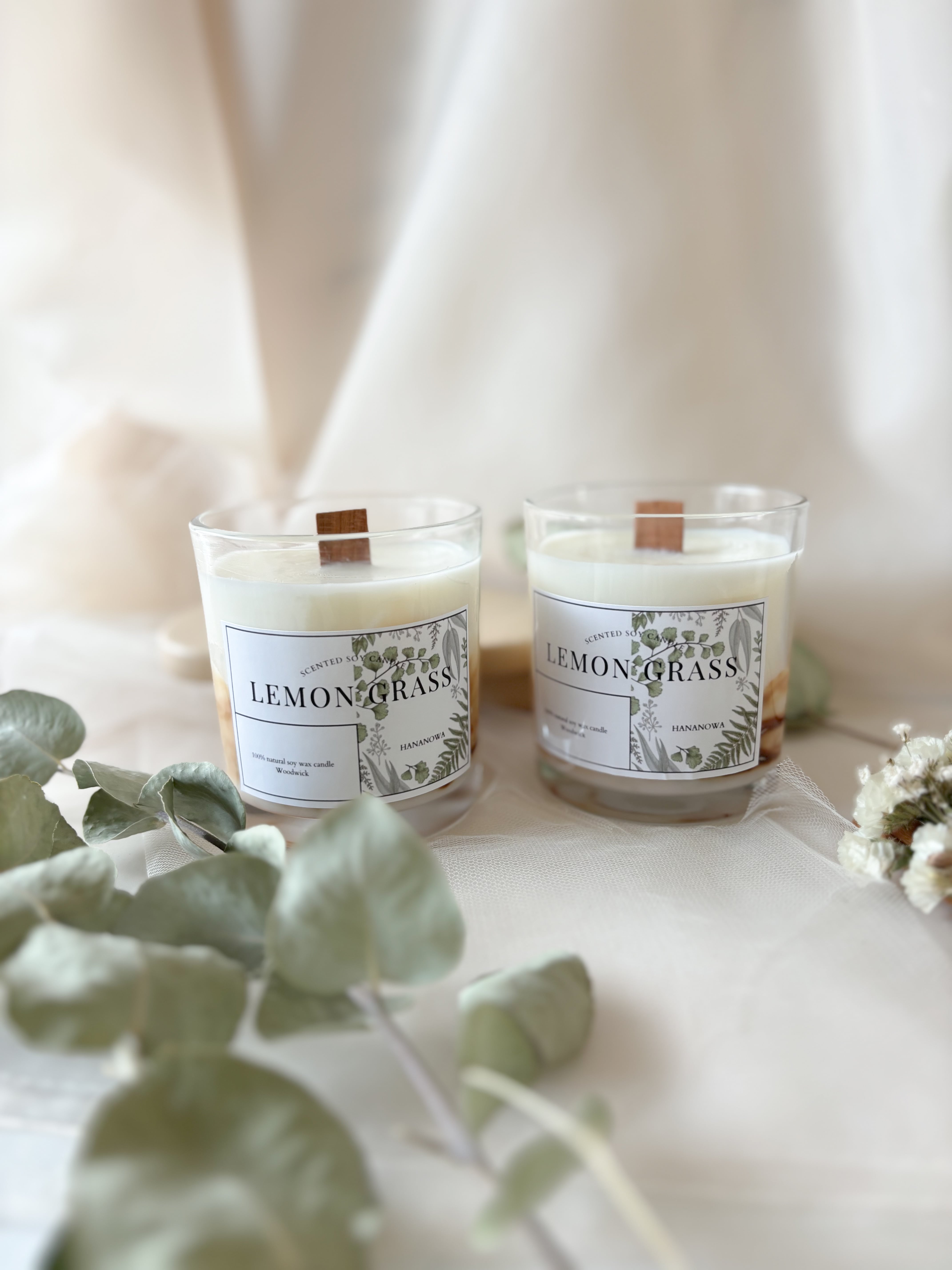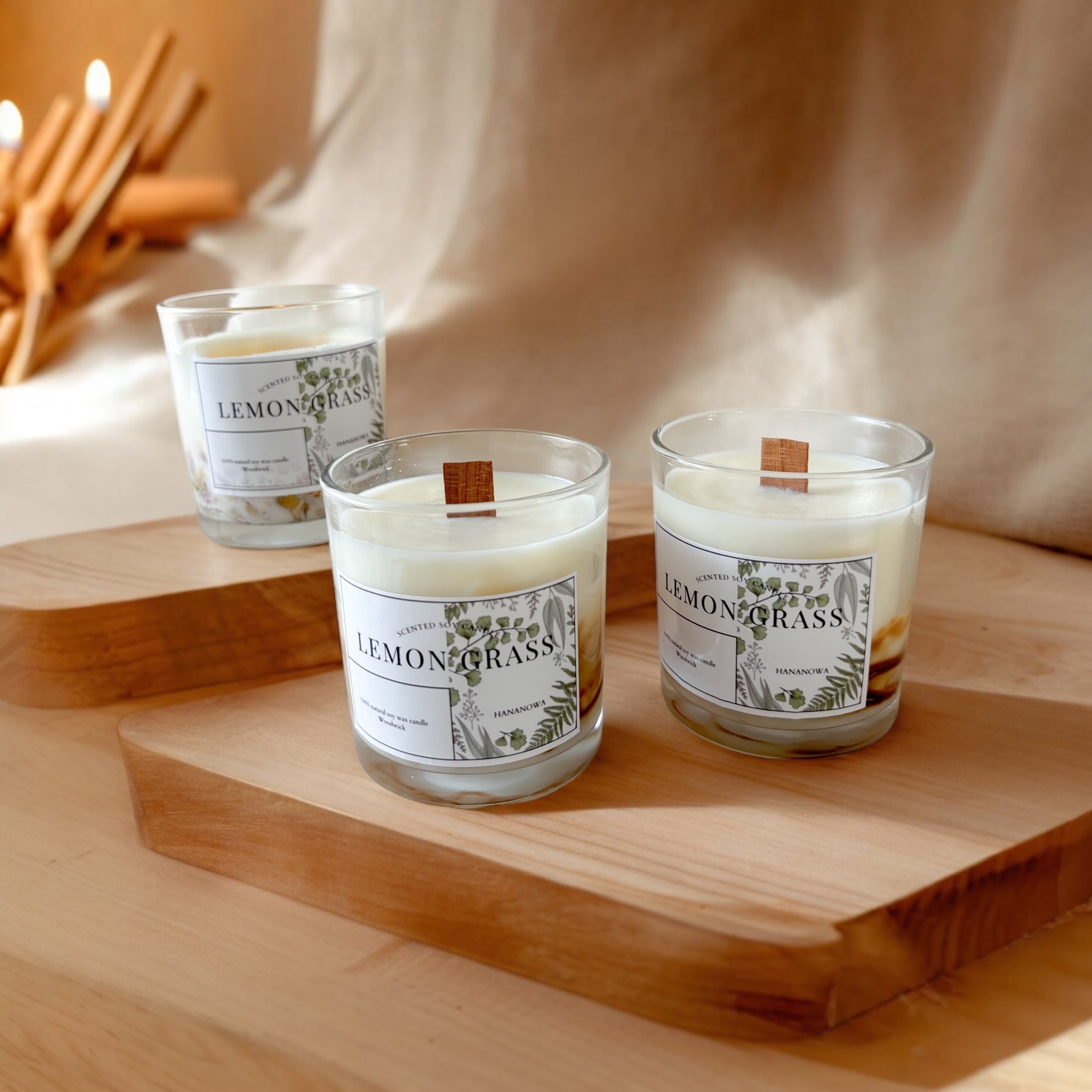 レモングラスの香りに癒される 木芯ソイキャンドル / べっ甲デザイン アロマキャンドル hananowa