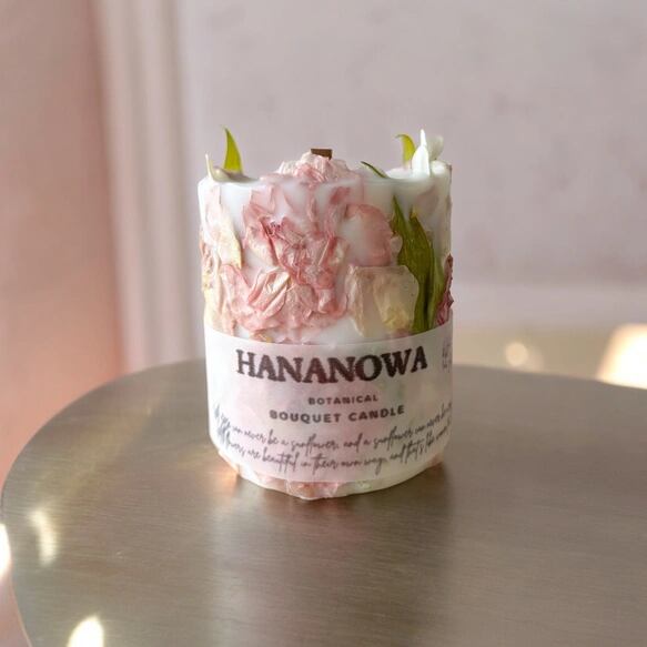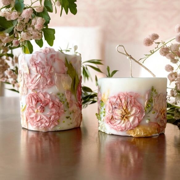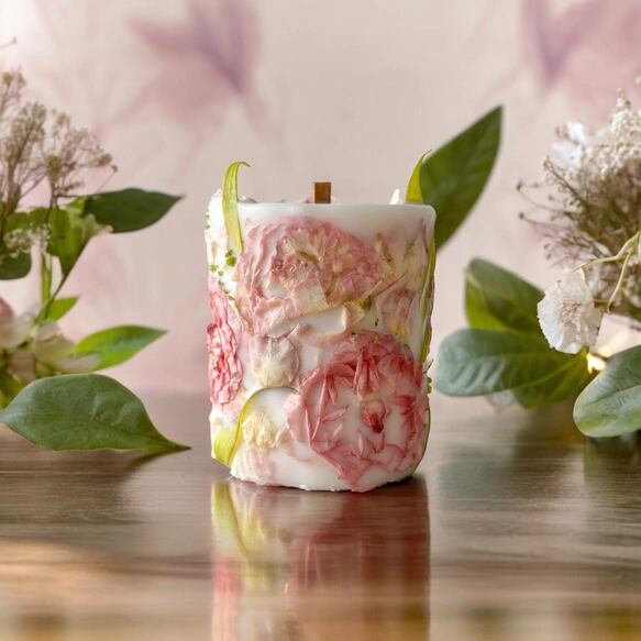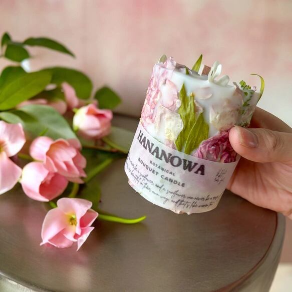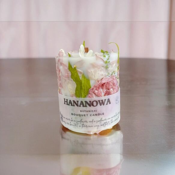 2種類のピンクがたっぷり入った ボタニカルキャンドル bouquet candle 【一点物】/ 韓国キャンドル